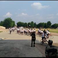 बीएसएफ एवं केंद्रीय अद्र्धसैनिक बलों के पांच सौ जवान गुरुवार को अहिंसा, स्वच्छता और नशीली दवाओं को लेकर जागरुकता का संदेश साईकिल रैली के रूप में झुंझुनूं पहुंचे। महात्मा गांधी की 150 वीं जयंती के उपलक्ष्य में आयोजित साईकिल रैली में शामिल जवान देशभक्ति के जज्बे से लबरेज नजर आए। रैली मार्ग जवानों की ओर से लगाए जा रहे ‘भारत माता की जय’ और ‘वंदेमातरम’ के नारों से गुंजायमान नजर आया।