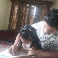 with the continuation of the initiative of sdg goal 4 quality education today on 5th of May I had taken 2 session of these 2 children.In first sesssion I had helped my younger sister in her homework and some doubts from 11:00 a.m to 1:00 p.m .Then I took 2nd seesion in which my neighbour child had come