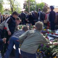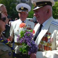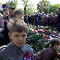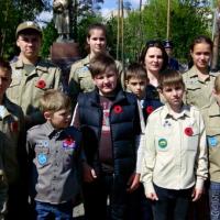 9th of May in Ukraine it is Day of Victory over nazism in World War II. On this day ukrainian people honored the memory of the people who died in the war, laying flowers on the graves and monuments, and congratulate old veterans. Scouts from the city of Kyiv region Irpen also joined the celebration.