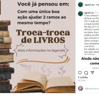 Troca troca de livro, com doação dos que ninguém trocou, para venda e diminuição de custos de atividades e para biblioteca