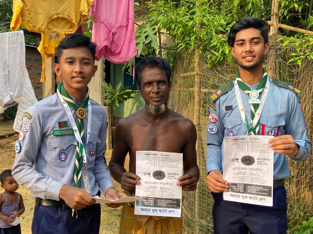 As dengue cases surged in our country, our community sprang into action. We organized an awareness and eradication program, focusing on cleaning breeding sites and spraying medicine. On October 1st, I joined with local community and scout members. After learning about dengue from a hospital representative, we distributed educational leaflets and sprayed mosquito-killing medicine in key areas, making a significant impact on awareness and prevention.