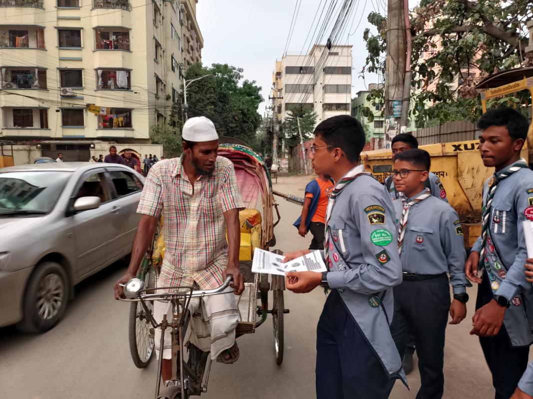 The scouts of our group made people aware by distributing leaflets about dengue in sector-6 in Uttara, Dhaka.
