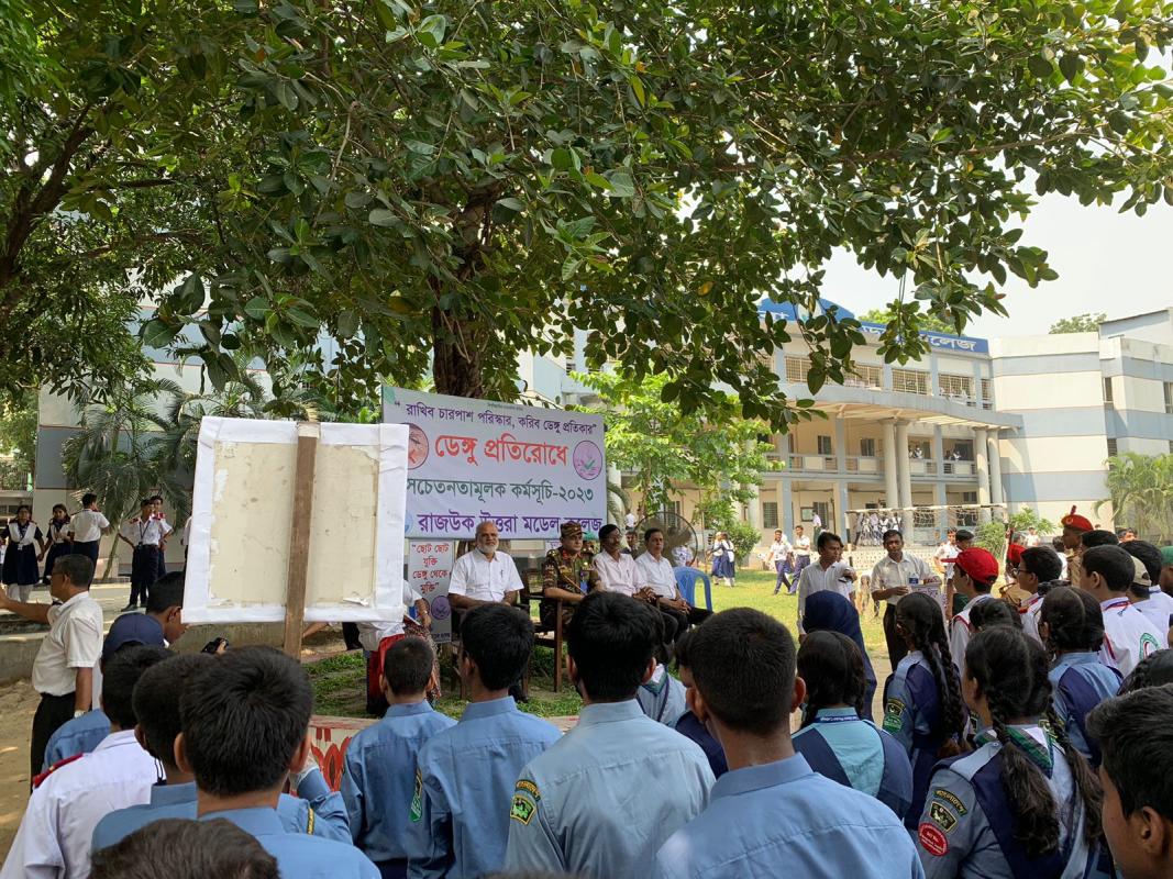 Our project took place in Rajuk Uttara Model College.We made students aware about dengue and mosquitoes through placards we also cleaned our school welly so that not mosquitoes can take birth anywhere near our school.