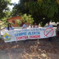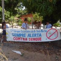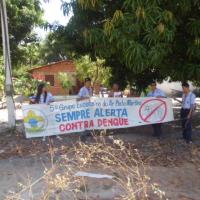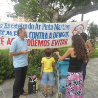 Principais Agentes: FRANCISCO JOCIVALDO BEZERRA PINHEIRO - Registro Escoteiro Número: 193-7 VERA LUCIA OLIVEIRA VERAS BEZERRA PINHEIRO - Registro Escoteiro Número: 582457-5 VIKTOR MILTON SOUTO VERAS - Registro Escoteiro Número: 445557-6 Marcos Clayton Fernandes Pessoa - Registro Escoteiro Número: 855780-2 Maria Victória Alves de Mesquita Pessoa - Registro Escoteiro Número: 854588-0 LUCINEIDE MARQUES FERNANDES - Registro Escoteiro Número: 894314-1 A dengue é uma doença infecciosa transmitida pela picada do mosquito Aedes aegypti infectado. No Brasil, as condições climáticas favorecem a circulação do mosquito, fazendo com que todos os anos milhares de pessoas peguem dengue. É uma doença séria que pode matar, mas também pode ser evitada se atitudes efetivas forem tomadas. Basta você agir. CUIDE DA SUA CASA. FALE COM SEUS VIZINHOS. CONVERSE COM A PREFEITURA. Evitar a dengue é possível com a participação de todos. Por isso, fique de olho na sua casa, no seu trabalho e elimine tudo que possa se transformar em foco do mosquito. Estimule seus amigos e vizinhos a fazerem o mesmo. Se você perceber focos do mosquito no seu bairro, informe os órgãos responsáveis do seu município. E lembre-se: converse com a prefeitura e cobre essa postura de combate. SINTOMAS DA DENGUE Os sintomas mais comuns são febre alta com dor de cabeça, dor atrás dos olhos, no corpo e nas juntas. Se apresentar dois ou mais desses sintomas, procure uma unidade de saúde e não tome remédios sem orientação médica. SAIBA COMO EVITAR A DENGUE Combater a dengue é uma tarefa séria que deve ser realizada todos os dias. O mosquito da dengue se reproduz onde há água parada. Por isso, é preciso eliminar todos os objetos que podem acumular água para evitar que o mosquito nasça. Veja a seguir quais são os principais focos do mosquito da dengue e aprenda como se prevenir: Mantenha bem tampados tonéis e barris d’água. Mantenha a caixa d’água bem fechada. Coloque também uma tela no ladrão da caixa d’água Encha de areia até a borda os pratos das plantas ou lave-os semanalmente com escova Troque a água dos vasos de plantas aquáticas e lave-os com escova, água e sabão uma vez por semana. Remova folhas, galhos e tudo que possa impedir a água de correr pelas calhas. Vire todas as garrafas com a boca para baixo, evitando que acumule água dentro delas. Lave por dentro com escova e sabão os utensílios usados para guardar água em casa. Não deixe água acumulada sobre a laje. Feche bem o saco de lixo e deixe-o fora do alcance de animais. Coloque no lixo todo objeto não utilizado que possa acumular água. Lave semanalmente por dentro com escova e sabão os tanques utilizados para armazenar água. Coloque o lixo em sacos plásticos e mantenha a lixeira bem fechada. COMITÊ DE COMBATE À DENGUE O combate à dengue é uma ação que cabe a todos nós, seja em casa, na rua, no bairro, no trabalho, na cidade. Deve envolver toda a população, pois cada pessoa tem uma contribuição importante a dar, dessa ação depende o bem-estar de cada um e a saúde de todos. Uma iniciativa efetiva é a criação de comitês de combate ao mosquito transmissor. Esses comitês podem ser formados por um grupo pequeno de pessoas, e as ações de combate variam conforme o ambiente a ser cuidado. Haja! Forme um comitê! No dia 20 de dezembro de 2014 realizamos uma nova campanha na Praça do Passeio Publico em Fortaleza. No dia 17 de janeiro de 2015 realizamos nova campanha na cidade do IPU-Ce. “O QUE É A DENGUE” A dengue é uma doença infecciosa febril aguda causada por um vírus da família flaviridae e é transmitida através do mosquito Aedes Aegypt, também infectado pelo vírus. TIPOS DE DENGUE Em todo o mundo, existem quatro tipos de dengue, já que o vírus causador da doença possui quatro sorotipos: DEN-1, DEN-2, DEN-3 e DEN-4. Formas de apresentação A dengue pode se apresentar – clinicamente - de quatro formas diferentes formas: Infecção Inaparente, Dengue Clássica, Febre Hemorrágica da Dengue e Síndrome de Choque da Dengue. Dentre eles, destacam-se a Dengue Clássica e a Febre Hemorrágica da Dengue. Infecção Inaparente A pessoa está infectada pelo vírus, mas não apresenta nenhum sintoma. A grande maioria das infecções da dengue não apresenta sintomas. Acredita-se que de cada dez pessoas infectadas apenas uma ou duas ficam doentes. Dengue Clássica A Dengue Clássica é uma forma mais leve da doença e semelhante à gripe. Geralmente, inicia de uma hora para outra e dura entre 5 a 7 dias. A pessoa infectada tem febre alta (39° a 40°C), dores de cabeça, cansaço, dor muscular e nas articulações, indisposição, enjoos, vômitos, manchas vermelhas na pele, dor abdominal (principalmente em crianças), entre outros sintomas. Os sintomas da Dengue Clássica duram até uma semana. Após este período, a pessoa pode continuar sentindo cansaço e indisposição. - Dengue Hemorrágica A Dengue Hemorrágica é uma doença grave e se caracteriza por alterações da coagulação sanguínea da pessoa infectada. Inicialmente se assemelha a Dengue Clássica, mas, após o terceiro ou quarto dia de evolução da doença surgem hemorragias em virtude do sangramento de pequenos vasos na pelo e nos órgãos internos. A Dengue Hemorrágica pode provocar hemorragias nasais, gengivais, urinárias, gastrointestinais ou uterinas. Na Dengue Hemorrágica, assim que os sintomas de febre acabam a pressão arterial do doente cai, o que pode gerar tontura, queda e choque. Se a doença não for tratada com rapidez, pode levar à morte. - Síndrome de Choque da Dengue Esta é a mais séria apresentação da dengue e se caracteriza por uma grande queda ou ausência de pressão arterial. A pessoa acometida pela doença apresenta um pulso quase imperceptível, inquietação, palidez e perda de consciência. Neste tipo de apresentação da doença, há registros de várias complicações, como alterações n