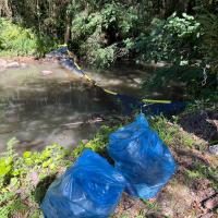 O projeto executou o desenvolvimento e a implantação de uma ecobarreira no Rio Curuçu, utilizando materiais de baixo custo, como rede de pesca, corda (17 metros) e boias macarrão. A barreira foi instalada transversalmente no rio em 7 de setembro de 2025 e foi submetida a monitoramento contínuo. Em 29 de outubro de 2025, uma manutenção foi realizada para reforçar a estrutura e recolocar uma nova rede. O encerramento se deu em 10 de novembro de 2025