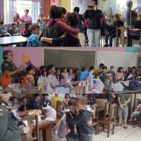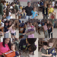 Arrecadamos durante dois meses e em uma atividade especial entregamos roupas, livros, materiais de limpeza, alimentos, doces e presentes para crianças no Dia das Crianças das 09h às 12h. Cada lobinho adotou uma cartinha, fez doações, participou das compras e montou pacotinhos de doces. A programação incluiu canções escoteiras, entrega de doações, brincadeiras e um lanche comunitário. A atividade foi um sucesso, promovendo solidariedade e alegria para todas as crianças envolvidas.