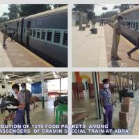 1510 NOS OF FOOD PACKETS & PACKAGED DRINKING WATER HAVE BEEN DISTRIBUTED AMONG THE PASSENGERS OF SHRAMIK SPECIAL TRAIN 06007 AT ADRA STATION ON 03.06.20 IN ASSOCIATION WITH BHARAT SCOUTS & GUIDES/ADRA.