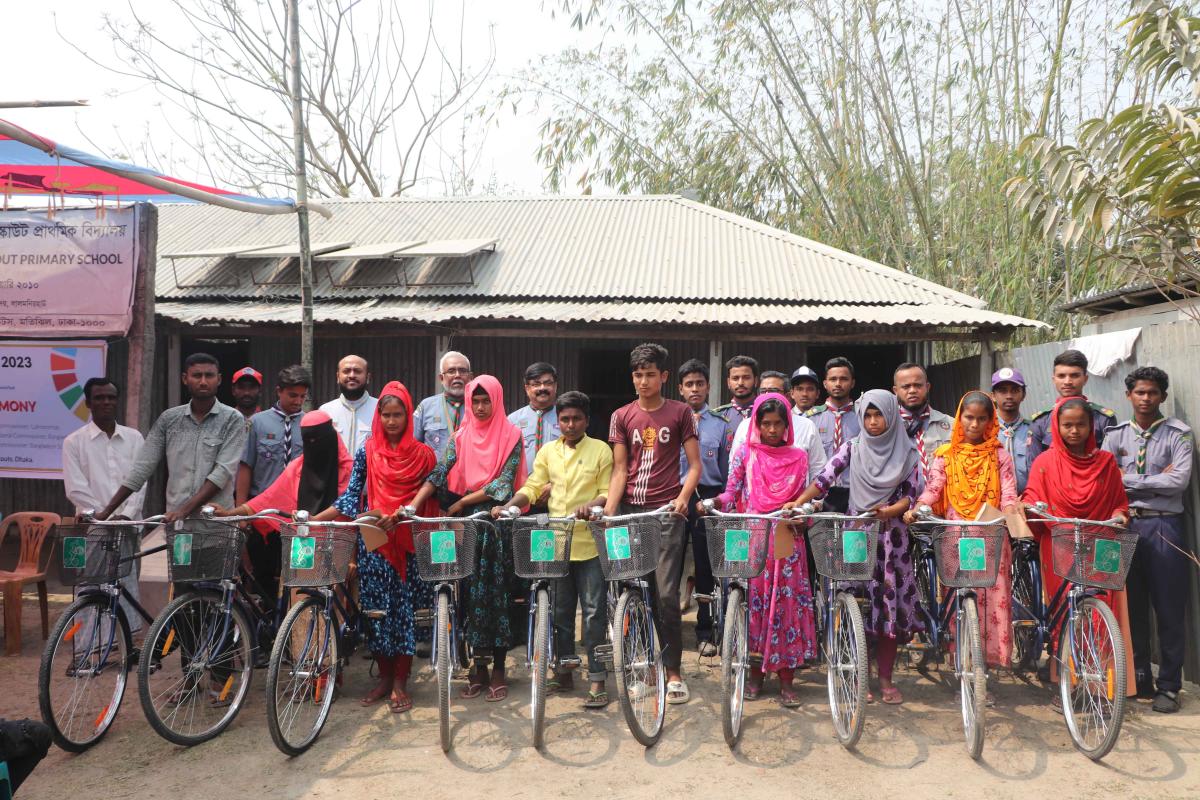 Crystal Open Scouts have been working for education at Lalmonir Hut's Scout Char for a long time, since the high school is far away from the char, many students are late to go to school. 10 bicycles are given to high school students to eliminate the cost.