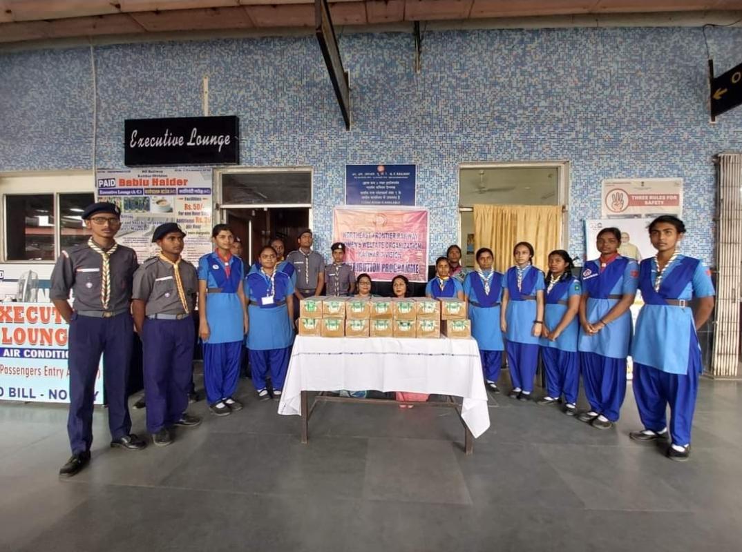 A program was held today at New Jalpaiguri Junction Station by distributing a fresh drinking juice to all the peoples present at the station, under the initiative of "NORTHEAST FRONTIER WOMEN'S WEL FARE KATIHAR DIVISION" and in collaboration with "The Bharat Scouts and Guides NJP District Association