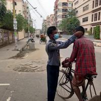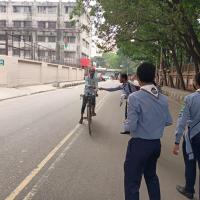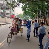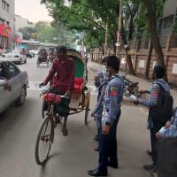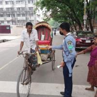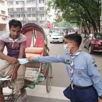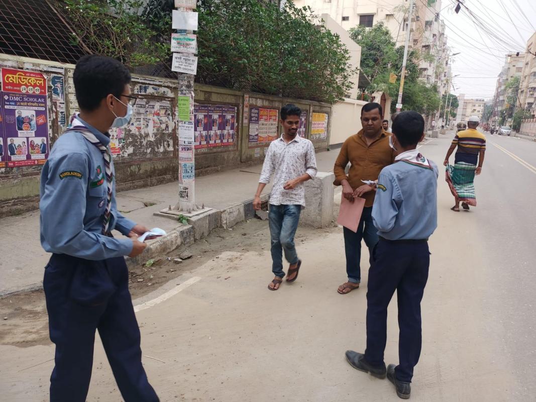 The Scout members of Rajuk Uttara Model College distributed masks among people at sector- 6 in Uttara in Dhaka-1230.