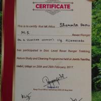 From 25-2-2017 to 26-2-2017 participated in the District Level ROVER & RANGER TREKKING, NATURE STUDY & CLEANING PROGRAMME held at Jomlu Teertha, Hebri, Udupi District, Karnataka state. INDIA.