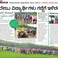 From 1-7-2017 to 3-7-2017 participated in the District Level SCOUTS – GUIDES & ROVERS - RANGERS WALK TOWARDS AGRICULTURE TRAINING CAMP( Scouts- Guides & Rovers – Rangers nadigea krishiya kadeagea) held at Raveendra Itala house environment Kota Padukere & Brahmavara Agriculture centre, Udupi District ,Karnataka state. INDIA.