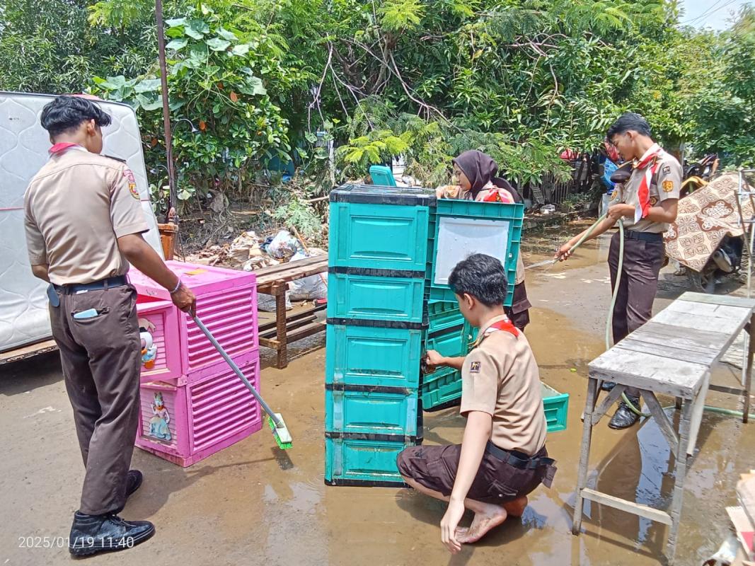 The first thing we did was gather Kedawung DKR administrators together to go to the location affected by the flood, then we coordinated with residents in Dawuan Village for the social service that we would carry out. Then we help residents collect rubbish, clean residents' household equipment, and tidy up household equipment.