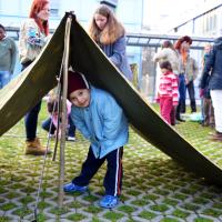 Just as we entered, kids started gathering around us, a bit shy, but very interested in us. So we took them to the yard and we put up two tents and they really enjoyed it! In fact, they were so good in paying attention at setting up the first tent that they put up the second one almost all by themselves!
