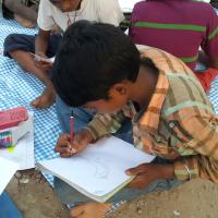 We are organised drawing compitiation for small children's in slum area. 55 kids participate in drawing competition.I disruption kids dawning sheet and colour Children's are different types drawing like flowers, birds, animals, flag,tree,ets.kids are very happy participate in compitiation this event very successful.