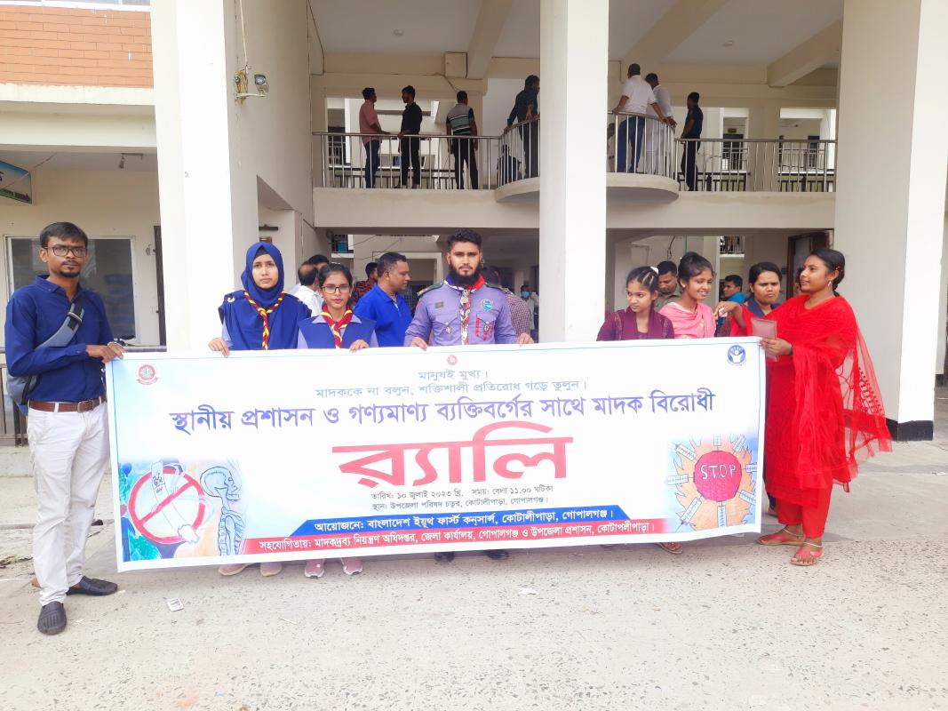 Our young society is drowning in the stream of destruction. The number of drug addicts is increasing day by day. Parents are worried, but can't find a solution. On July 10, 2023, a rally against drugs was organized in Kotalipara upazila.