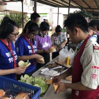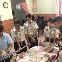第一天的活動是關懷機構老人和身心障礙者,所以為他們洗腳和按摩的服務。中午讓童軍夥伴餵食老人,學習如何照顧和關心身障老人。下午我們學習如何製作漢堡餐和炸薯條雞塊給比較年輕的身心障礙者。這也是他們難得喜歡的快樂餐。