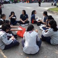 We reached Taman Botani at 6.30am. We helped our school teacher to make sure the surrounding is cleaned. We also help Girl Guide to give breads and water to participants.