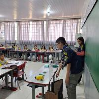 Fabricaçao de brinquedos com plástico reciclável, visando melhor utilização dos materiais disponíveis na natureza e educação sobre fauna.