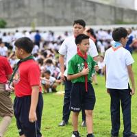 The Scouts of the Leaders' Council and the Senior High's Eagles Council serving in the Evacuation Drill 2019.