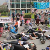 In a symbolic protest on the World Environment day, more than 200 activists, students, environmental campaigners, cyclists and pedestrians laid dead on the ground on Sunday, demanding the government take urgent action to ensure constitutional right to live in a healthy and clean environment.