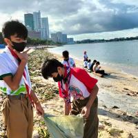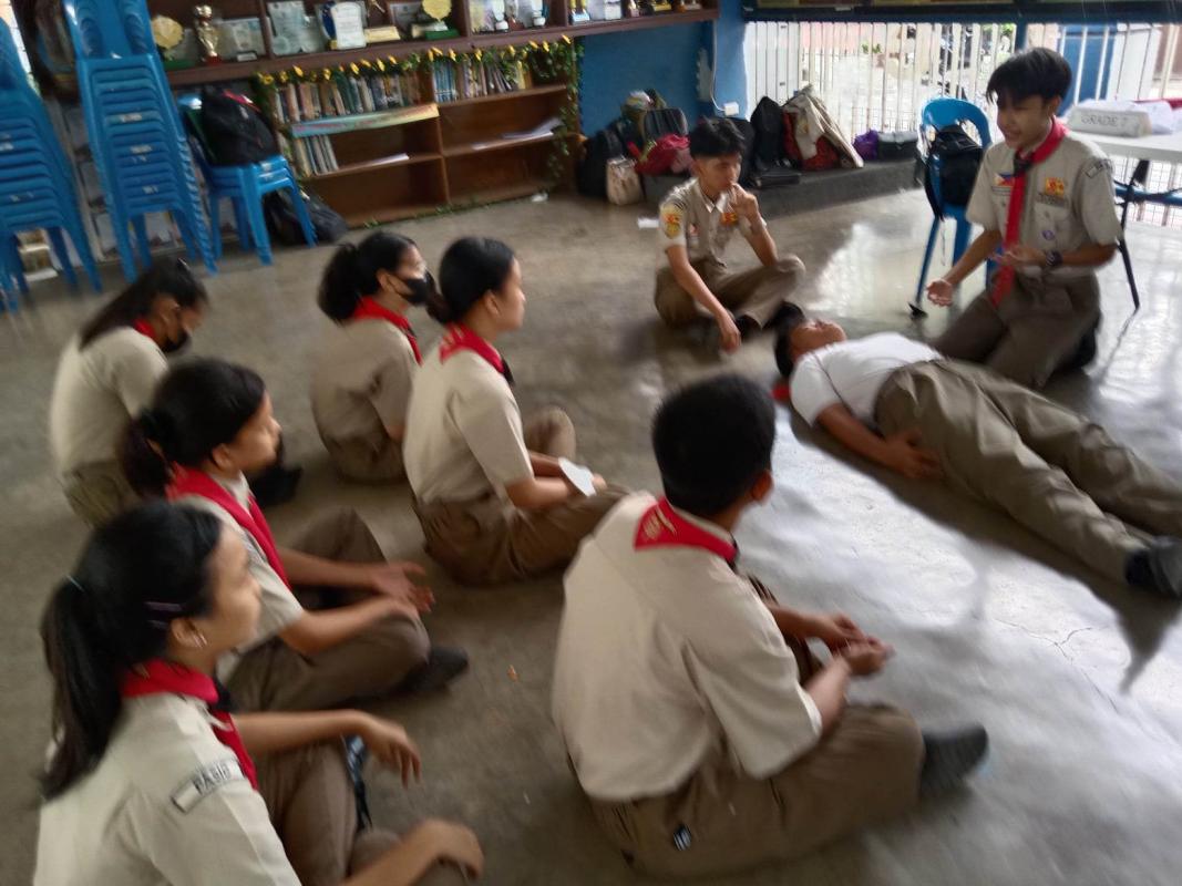 We teach the other scout from our scouting activity like knot tying, bandaging etc... and also we do the activity INTERNATIONAL COASTAL CLEAN UP (ICC)