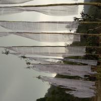 "Eracting prayer Flags on world happy day"