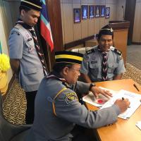 Pentauliahan seorang pesuruhjaya pengakap merupakan erti amanah. Itulah yang dikatakan oleh Datuk Awang Zaini Hj. Suntim pada Majlis Pentauliahan Bahagian Sandakan Sesi 19/21. Auditorium Jabatan Perhutanan Sandakan menjadi saksi, bukan sekadar ikrar persetiaan dan lafaz sumpah, namun ‘amanah’ yang digalas perlu diterjemahkan secara seiring agar masa depan pengakap khususnya Persekutuan Pengakap Malaysia Cawangan Sabah lebih maju dan berkembang. Ayuh,pemimpin daerah Sandakan, Sibuga, Karamunting, Kinabatangan, Beluran dan Telupid! Kotakan janjimu dan terus positif kerana kita ialah pengakap sejati.