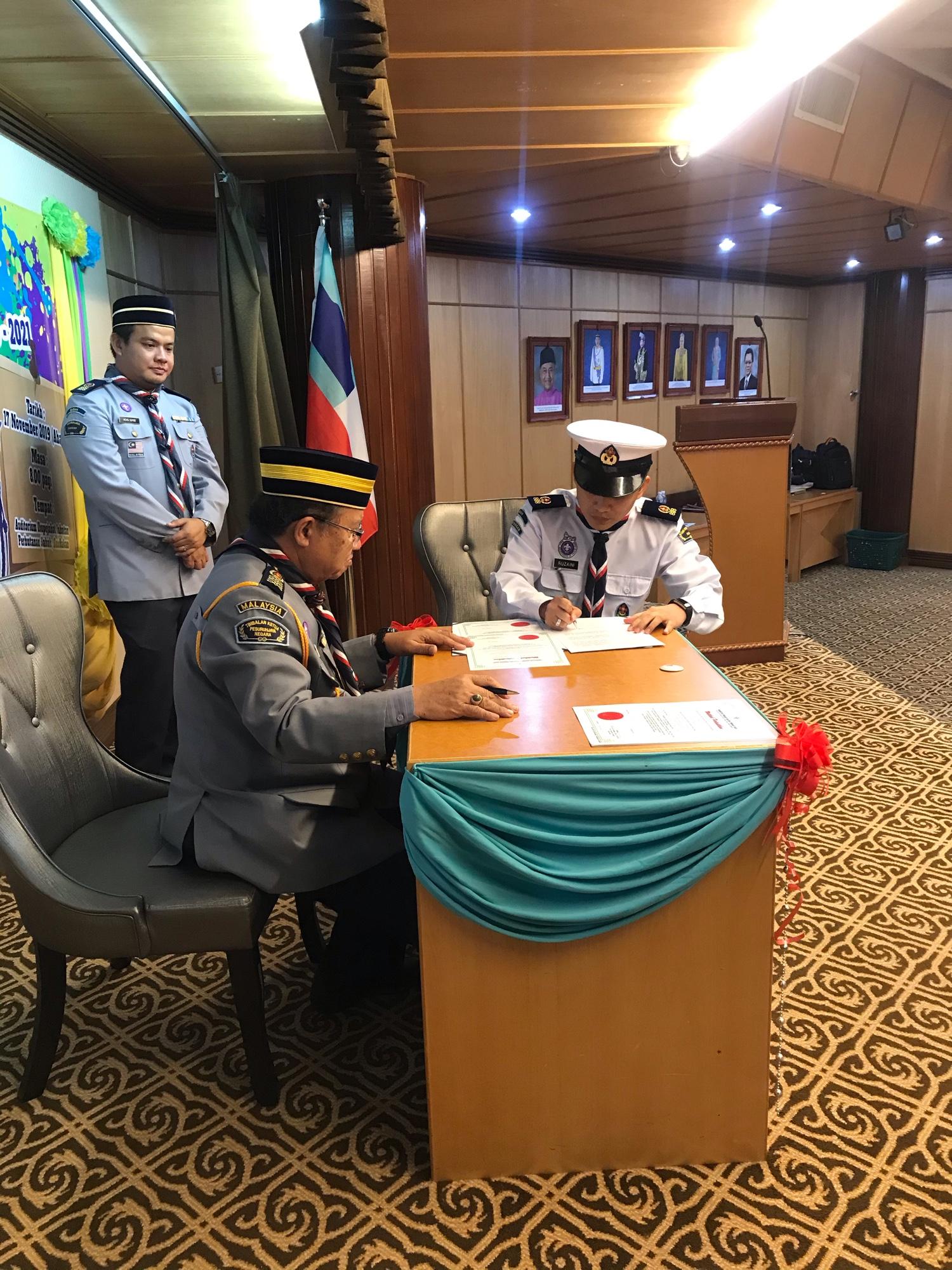 Pentauliahan seorang pesuruhjaya pengakap merupakan erti amanah. Itulah yang dikatakan oleh Datuk Awang Zaini Hj. Suntim pada Majlis Pentauliahan Bahagian Sandakan Sesi 19/21. Auditorium Jabatan Perhutanan Sandakan menjadi saksi, bukan sekadar ikrar persetiaan dan lafaz sumpah, namun ‘amanah’ yang digalas perlu diterjemahkan secara seiring agar masa depan pengakap khususnya Persekutuan Pengakap Malaysia Cawangan Sabah lebih maju dan berkembang. Ayuh,pemimpin daerah Sandakan, Sibuga, Karamunting, Kinabatangan, Beluran dan Telupid! Kotakan janjimu dan terus positif kerana kita ialah pengakap sejati.