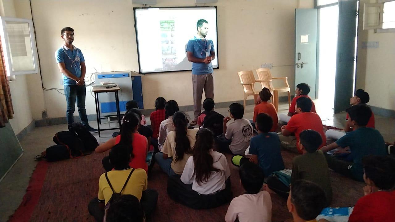 We told the children through posters and the use of bottles, how they can use their own, from the project they showed them the video of how much plastic is increasing in the sea, so that it can affect the children.