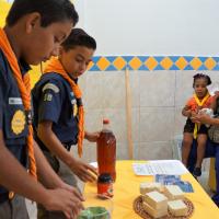 Desta vez trouxeram para o público presente no Projeto Educação Escoteira a fábrica caseira de sabão.