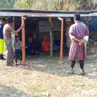 One of the scout, desup and volunteering few member of villages people leaved at border area in order to stop transport/travel one nation to another.