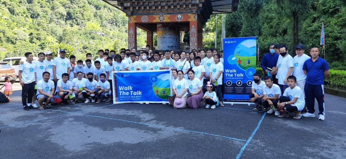 The project was organized in a remote corner of Bhutan known as Gomdar under Samdrupjongkhar District. We formed two groups and each group went to two different villages. While walking to the villages carrying brochures and banners with information on fighting non communicable diseases by reducing salt consumption, we also created awareness on the same topic to every people we met on the way. After reaching the village we advocated the villagers on the same topic.