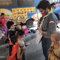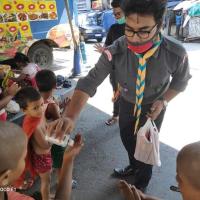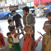 Today in early morning he wake up. Put the uniform and came forward to distribute Sanitizer and dry food for Street Children in Gariahut region.