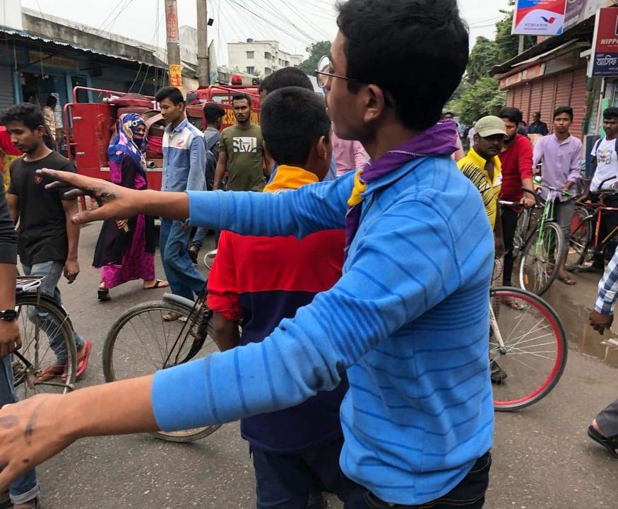 After seeing the flames from the burning shops, I contacted our scout group ex-senior patrol leader and one of our members. We three worked along with the fire service, red crecent team, and the police. Many of the local shop owners also came forward to help. After one hour of constant trying the fire service successfully stopped the fire. We helped them by controlling the crowd and local traffic. We also helped the shop owners after the fire was down.