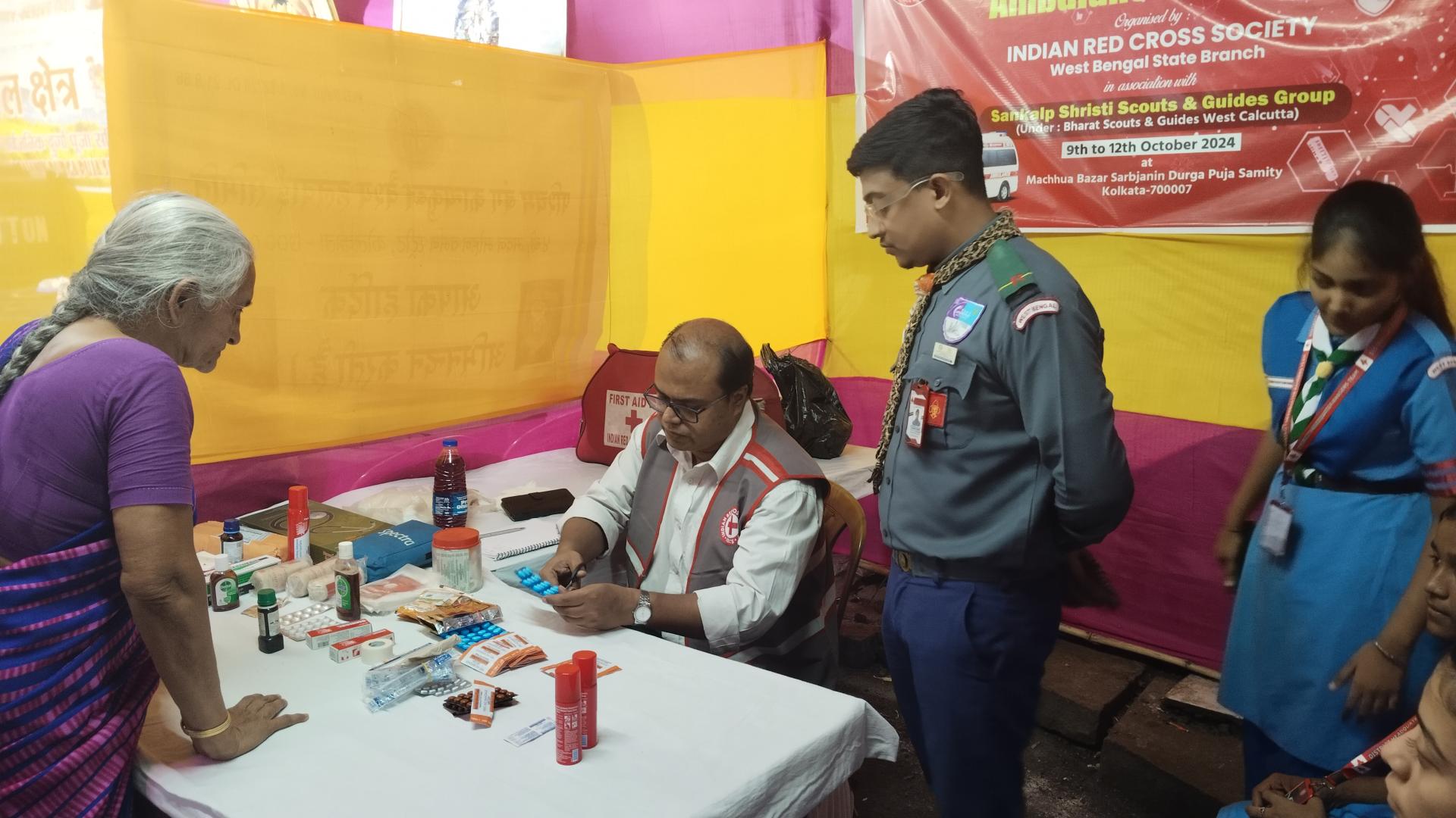 From 09/10/2024 to 12/10/2024 , members of Bharat scouts and Guides West Calcutta took the initiative to organize a First Aid Camp at machua bazar , where 10 scouts and 10 guides actively participated. We gathered essential medical supplies and first-aid kits to ensure the smooth implementation of the program.