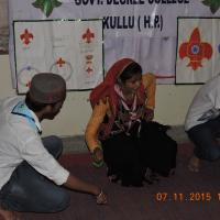 (Govt. College Kullu) 7th November 2015 Flag day of Bharat scout and Guide was celebrated in Govt. College Kullu. Group Leader Dr. N.L. Sharma was the chief guest for this event. Prof. Sunita Thakur was specially there to celebrate this day. It was organised by the help of Rover leader Prof. Shyam Singh and Ranger Leader Prof. Sakshi Rana. We first hosted the flag and then organised many competition for rovers and rangers like Declamation , Painting , Poster Making , Quiz, folk dance etc. Competition was based on Scouting. Chief Guest Dr. N.L. Sharma gave his blessings and appreciated the work done by rovers and rangers. Whole unit of GC kullu hosted the event and tried their best to make it successful. 20 rovers and rangers worked on 6th november and 70 rovers and rangers including other participants make themselves available on 7th November 2015. At last winners were awarded with prizes by honourable chief guest Dr. N.L. Sharma g.