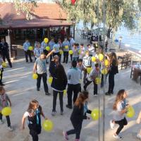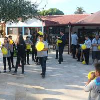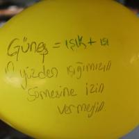 .....Yellow baloons are symbolizing sun and solar energy. Every scout had written messages on baloons about clean energy, environment,..etc and they had sent them everywhere as game with the meaning of energy.