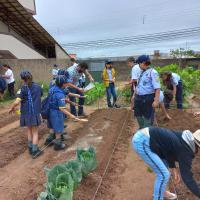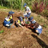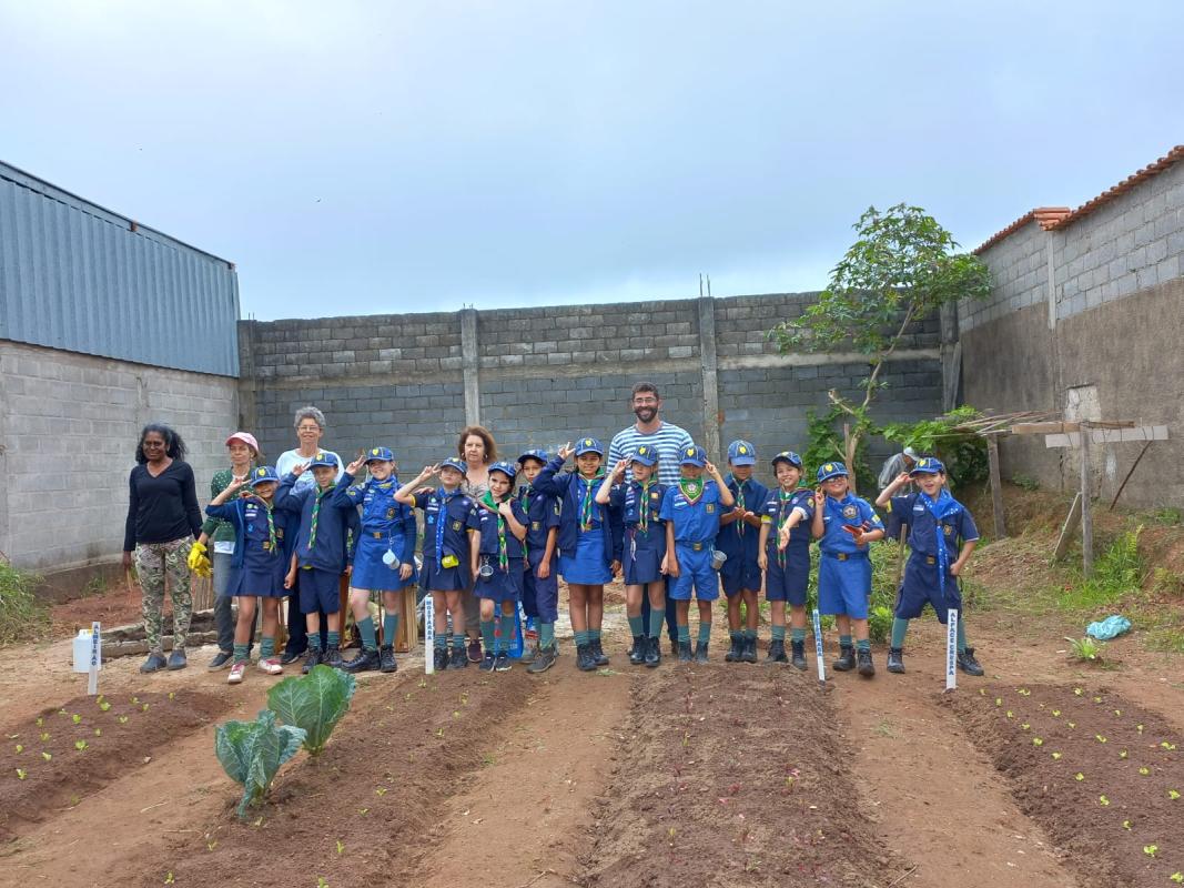 Foi realizado em 3 fases 1ª plantio experimental em sede GE Ar Guardião da Mantiqueira 160/MG, para experiencia e objetivos locais dos lobinhos. 2º visita técnica a local de produção de mudas de hortaliças e afins , aprender o processo 3ª fase : plantio em horta comunitária de bairro, com supervisão técnica, gerando manutenção e melhorias da mesma, para prover maior produção para a comunidade local.