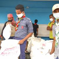 the members of titumir scouts and guides group went to the flood affected areas and distributed dry foods to the needy prople.