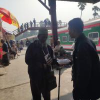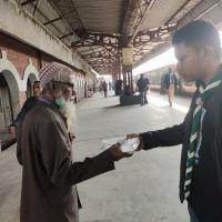 I and some of my scout friends distributed food to some poor people. At 8 a.m. we went from school to Jashore train station