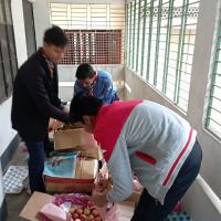 We 20 members decide together to do something for the people and all agree and give money. With that money we buy something to eat for the people. They are very happy to receive it.