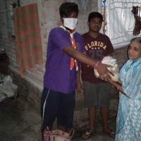 distributing food during the lockdown to the families of migrant workers at murarishah,rajapur,sardarati,pifa. west bengal,north 24 parganas