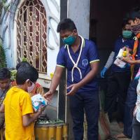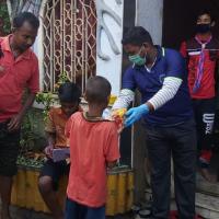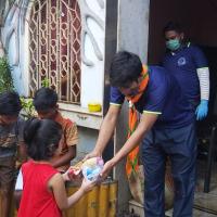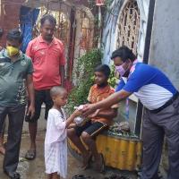 Food distribution among needy children during nCovid19 Pandemic lockdown and Amphan disaster situation.