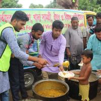 Distributing meal to underprivileged street children, hungy people, starving poor people and helpless people.