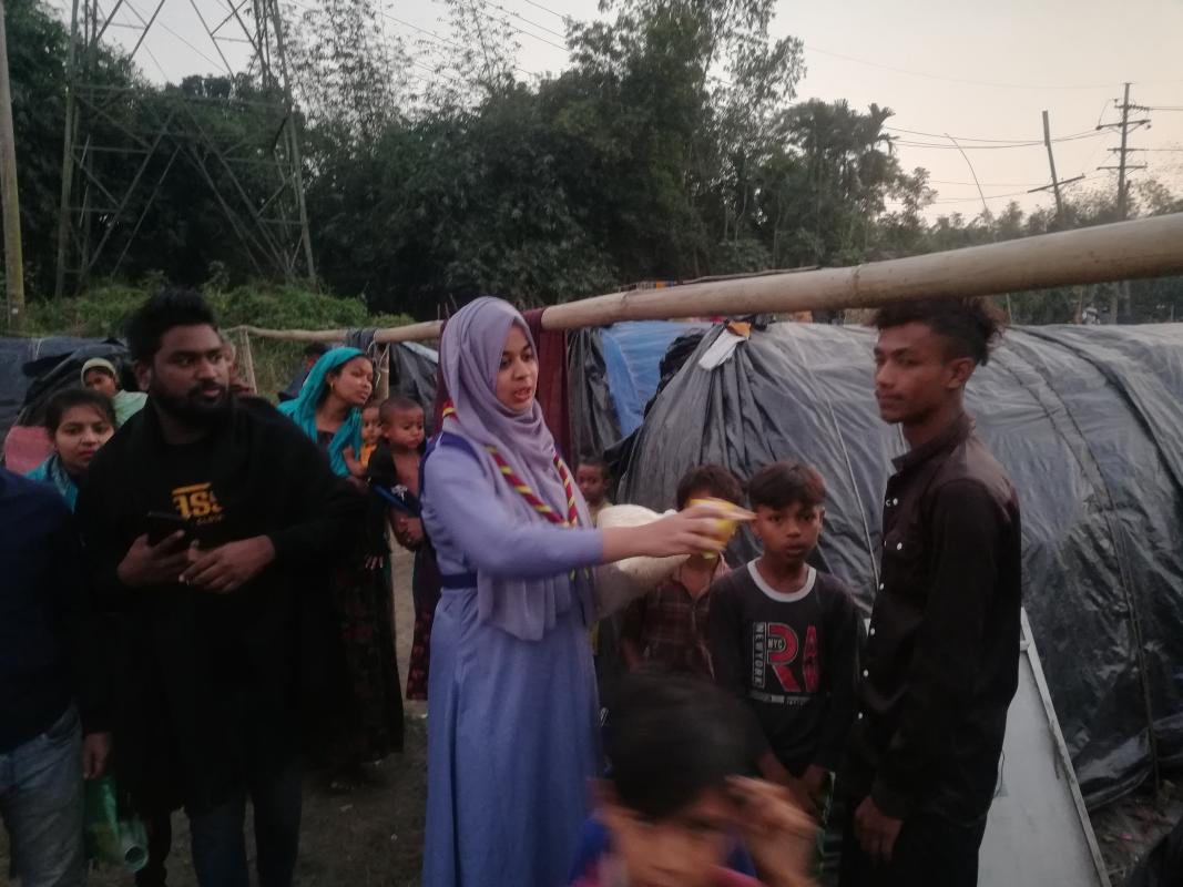 আমাদের জেলার কিছু জায়গা আছে যেখানে ভাসমান মানুষ অবস্থান করে, জাগির ব্রিজের নিচে সেই মানুষ গুলো বাছাই করে আমরা ৬জন রোভার তাদের ২৪জন শিশুদের জন্য এক বেলা কিছু শুকনো খাবারের ব্যবস্থা করার পদক্ষেপ গ্রহন করি। এই কাজ আমরা ২দিন ব্যাপি করি এবং সকাল ১১টা থেকে বিকেল ৫টা অব্দি করি,