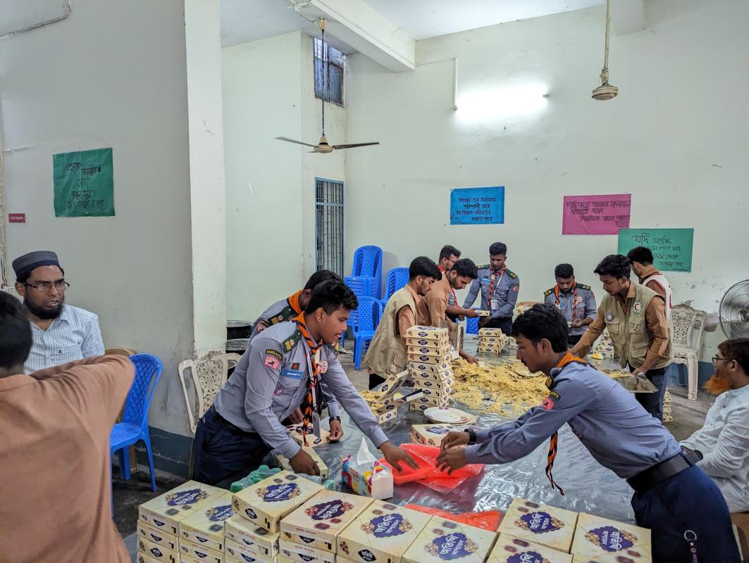 Members of Bogura Polytechnic Institute rover Scout Group initiated the food donation programme on 1/5/2024 to 1/5/2024 at Colony , Bogura sadar, Bogura,12:30 pm in which 84 scouts participated actively. We collected some food packets and insufficient things to implement this programme .