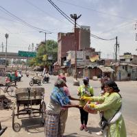 We together with 3 leaders and 1 Ranger made Sabji pooris together at home, then packed them and distributed food to 200 packets of poor & needy person, first of all got them hand sanitized with sanitizer. and Mask distribute needy persons, children's morning 8 am we are ready for preparation and Afternoon 1:30 pm to complete this programme.