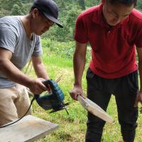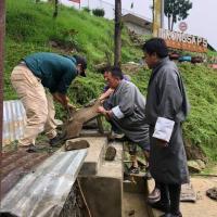 Cemented flower stands constructed along the footpath to school assembly ground.