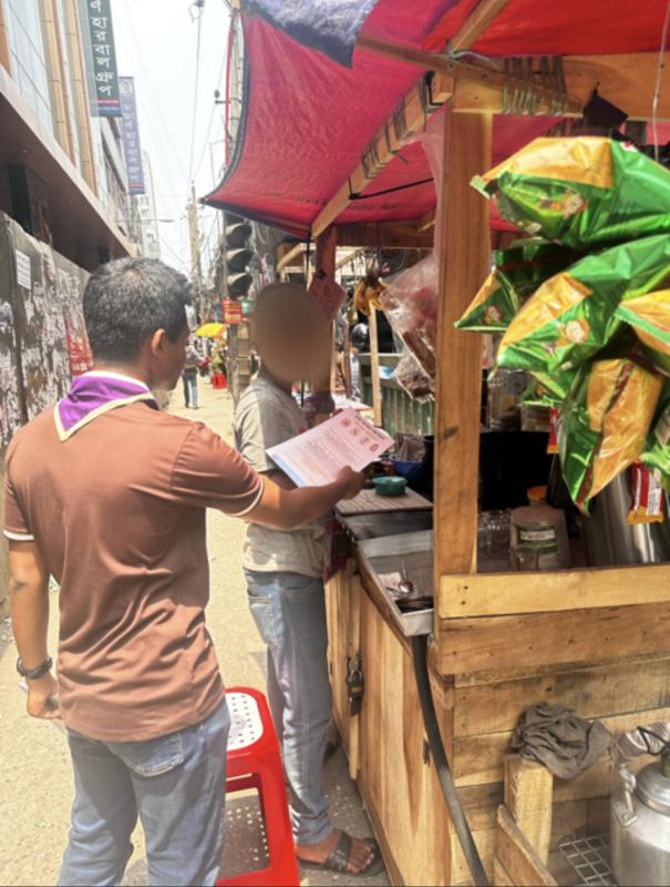 The Former Senior Patrol Leader of BIAM Model School & College Scout Group, led the campaign with support from Patrol Leaders Md. me, Rafiqul Islam Uday, and rover Md. Raiyan Mollah from Samatat Open Scout Group. From 9th to 10th April 2025, we visited food carts in Moghbazar, Malibagh, and Shantibagh, distributing awareness leaflets to both vendors and customers.
